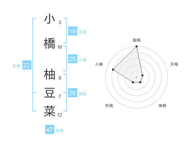 小橋 柚豆菜さんを姓名の画数から五運を鑑定