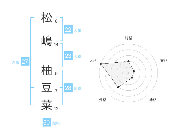 松嶋 柚豆菜さんを姓名の画数から五運を鑑定