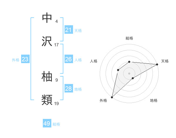 中沢 柚類さんの総格は49画の2点!