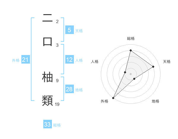 二口 柚類さんの外格は21画の5点!