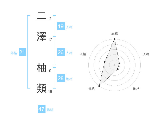 二澤 柚類さんの総格は47画の5点!