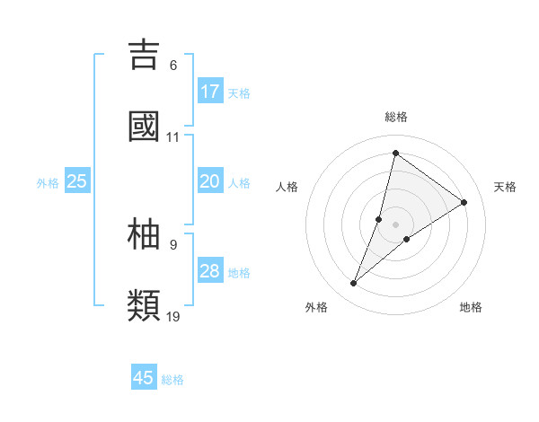 吉國 柚類さんの外格は25画の4点!