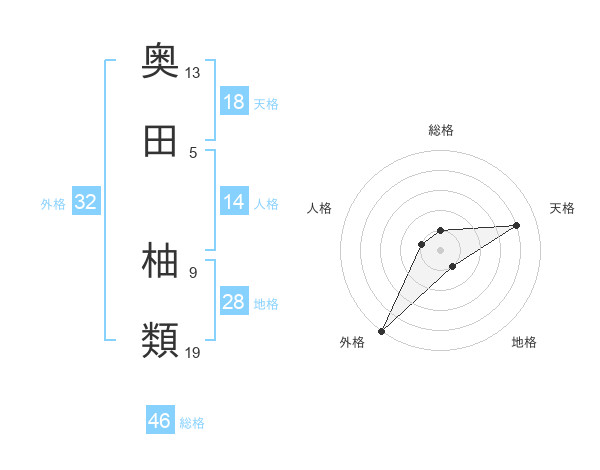奥田 柚類さんを姓名の画数から五運を鑑定
