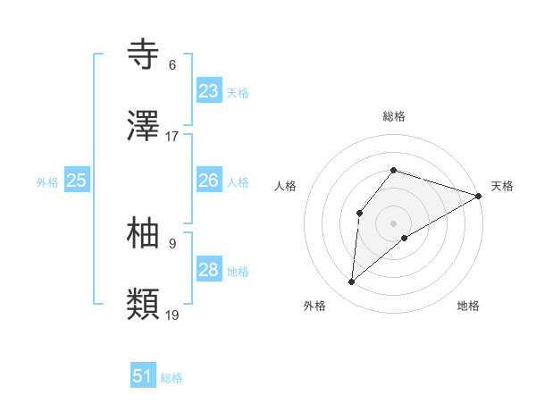 寺澤 柚類さんの総格は51画の3点!