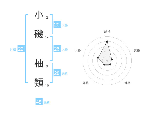 小磯 柚類さんを姓名の画数から五運を鑑定
