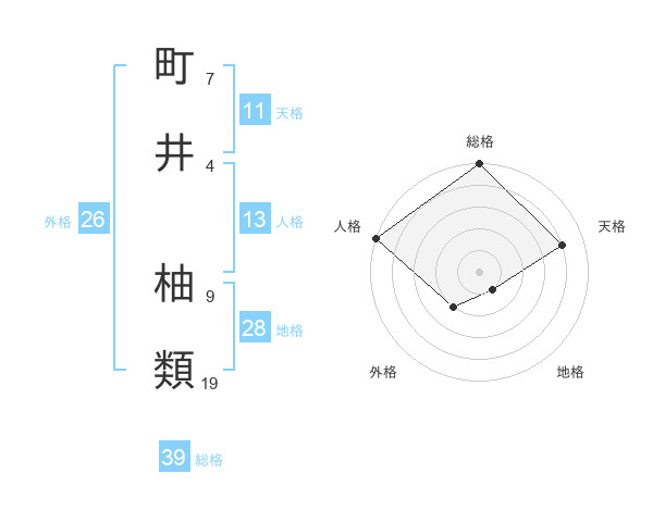 町井 柚類さんの総格は39画の5点!