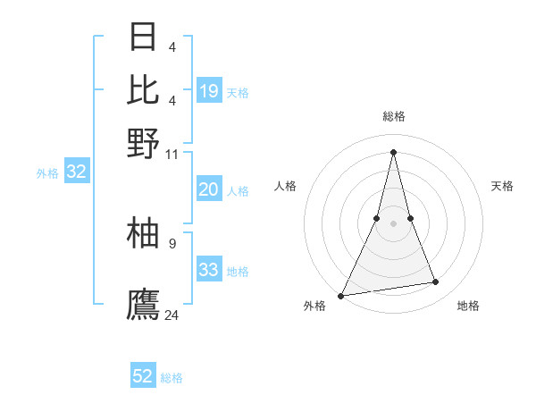 日比野 柚鷹さんを姓名の画数から五運を鑑定