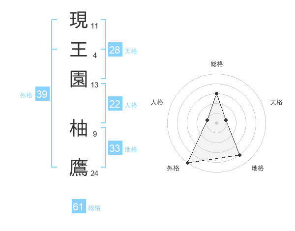現王園 柚鷹さんを姓名の画数から五運を鑑定