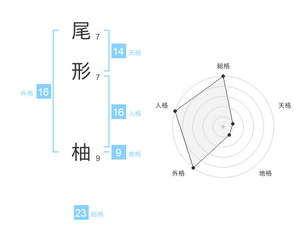 尾形 柚さんの外格は16画の5点!