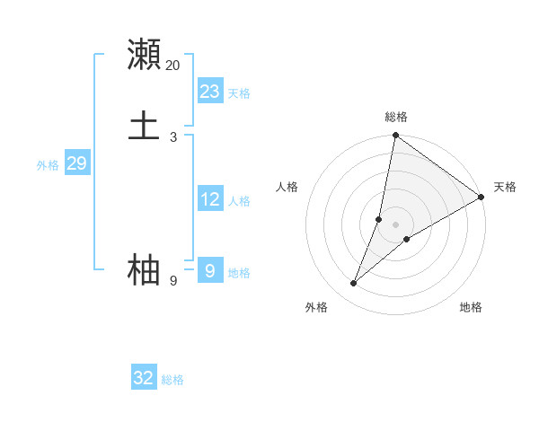 瀬土 柚さんの総格は32画の5点!