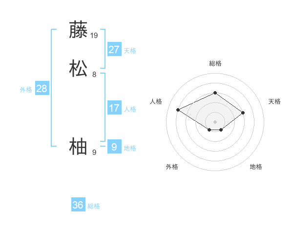 藤松 柚さんの総格は36画の3点!