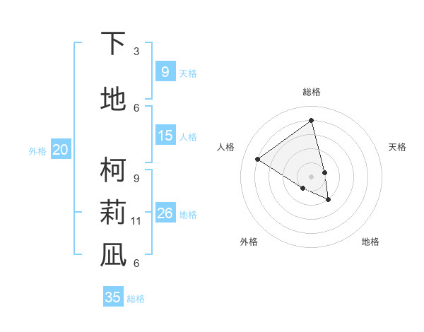 下地 柯莉凪さんを姓名の画数から五運を鑑定