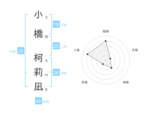 小橋 柯莉凪さんを姓名の画数から五運を鑑定
