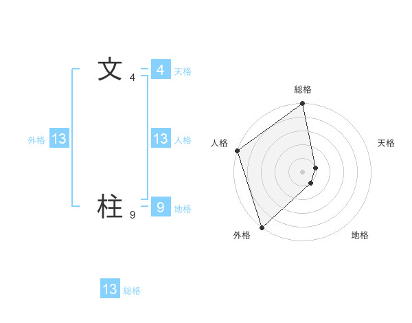 文 柱さんの外格は13画の5点!