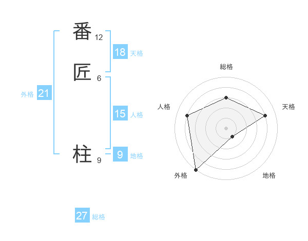 番匠 柱さんの総格は27画の3点!