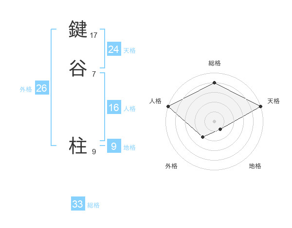 鍵谷 柱さんを姓名の画数から五運を鑑定