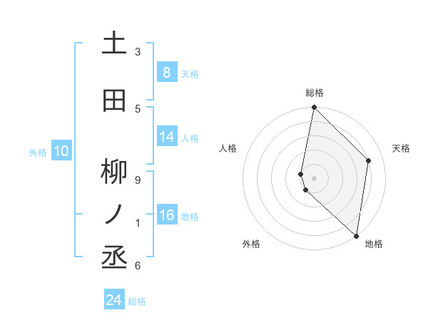土田 柳ノ丞さんを姓名の画数から五運を鑑定