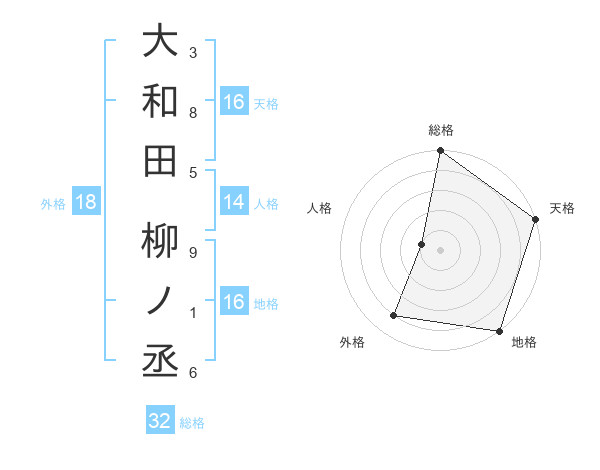 大和田 柳ノ丞さんを姓名の画数から五運を鑑定