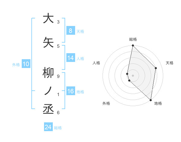 大矢 柳ノ丞さんを姓名の画数から五運を鑑定