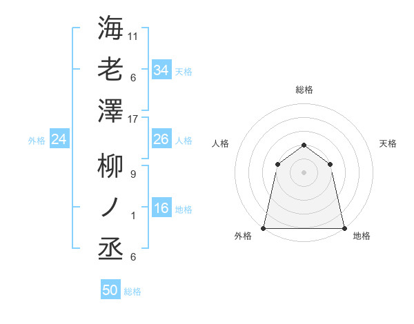 海老澤 柳ノ丞さんの総格は50画の2点!