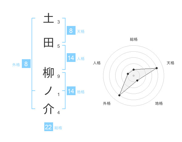 土田 柳ノ介さんを姓名の画数から五運を鑑定