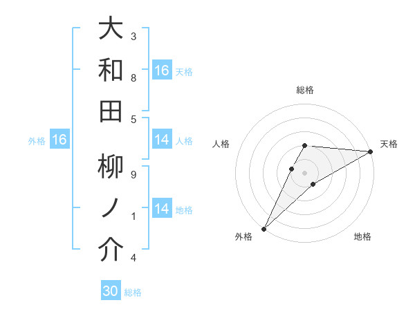 大和田 柳ノ介さんの外格は16画の5点!