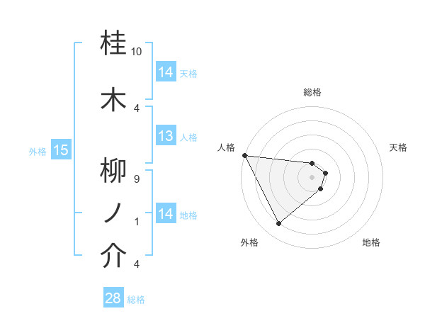 桂木 柳ノ介さんを姓名の画数から五運を鑑定