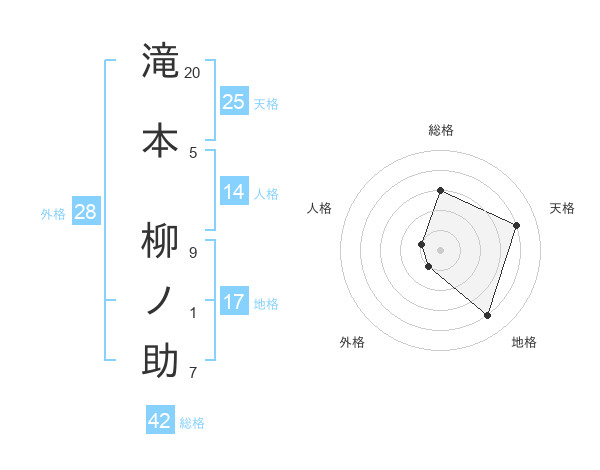 滝本 柳ノ助さんを姓名の画数から五運を鑑定