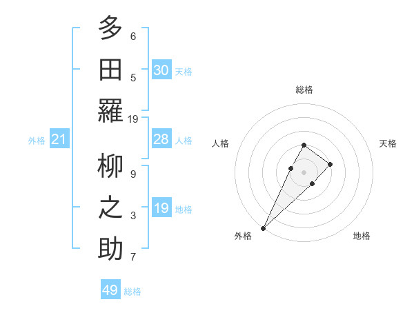 多田羅 柳之助さんを姓名の画数から五運を鑑定