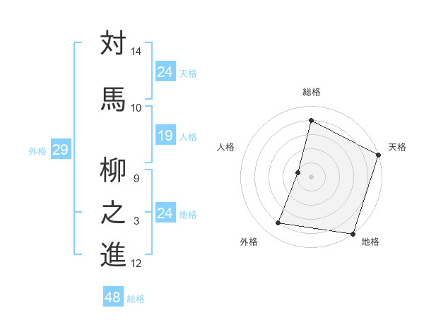 対馬 柳之進さんの地格は24画の5点!