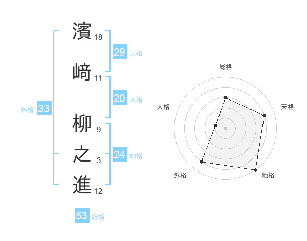 濱﨑 柳之進さんを姓名の画数から五運を鑑定