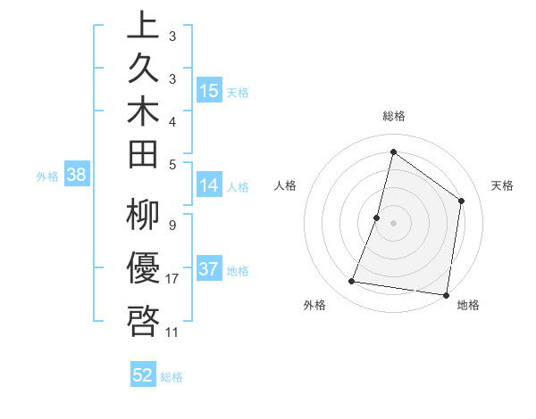 上久木田 柳優啓さんの外格は38画の4点!