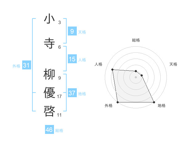 小寺 柳優啓さんの地格は37画の5点!