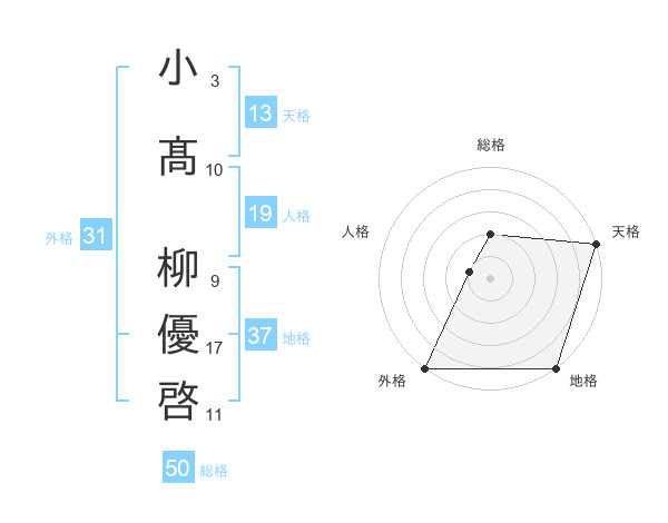 小髙 柳優啓さんを姓名の画数から五運を鑑定
