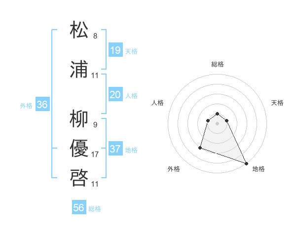 松浦 柳優啓さんを姓名の画数から五運を鑑定