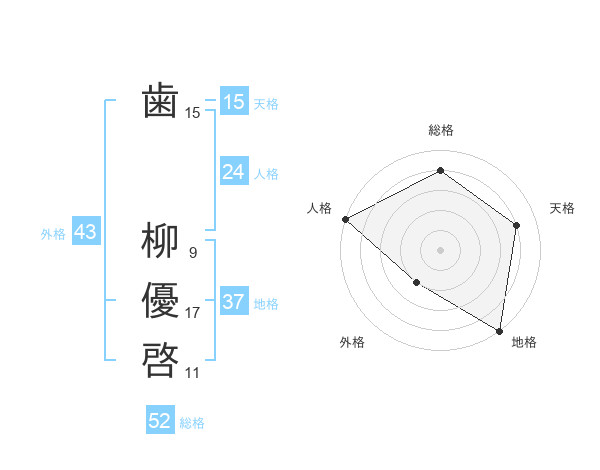 歯 柳優啓さんの総格は52画の4点!