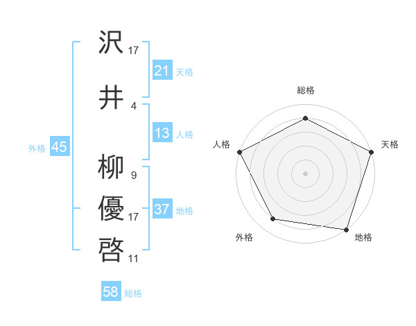 沢井 柳優啓さんの総格は58画の4点!