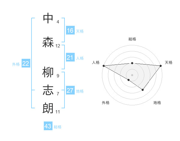 中森 柳志朗さんを姓名の画数から五運を鑑定