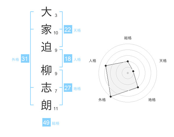 大家迫 柳志朗さんを姓名の画数から五運を鑑定