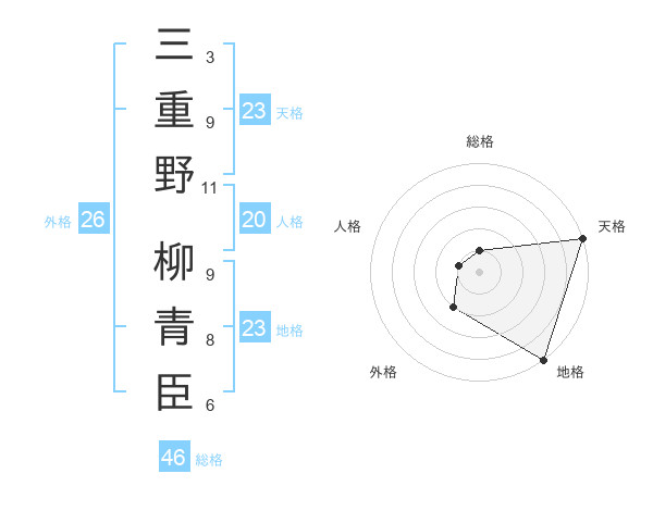 三重野 柳青臣さんの総格は46画の1点!