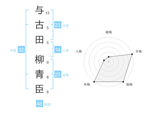 与古田 柳青臣さんを姓名の画数から五運を鑑定