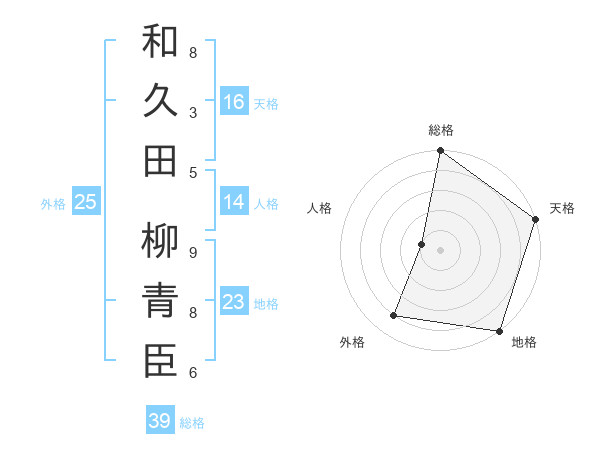 和久田 柳青臣さんを姓名の画数から五運を鑑定