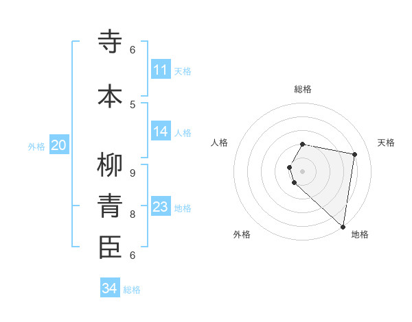寺本 柳青臣さんを姓名の画数から五運を鑑定