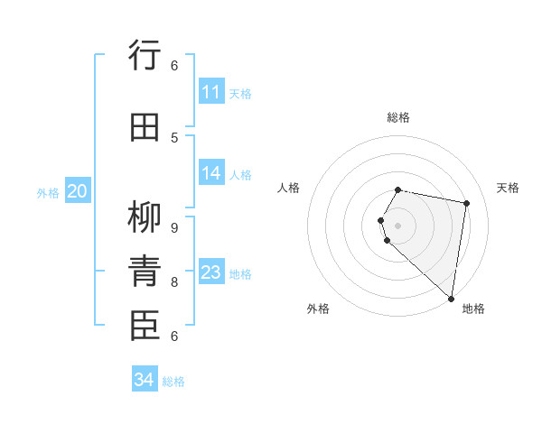 行田 柳青臣さんを姓名の画数から五運を鑑定