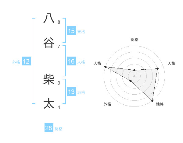 八谷 柴太さんを姓名の画数から五運を鑑定