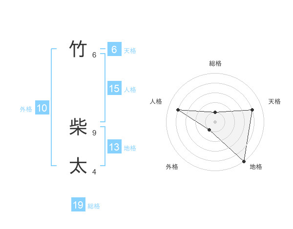 竹 柴太さんの総格は19画の1点!