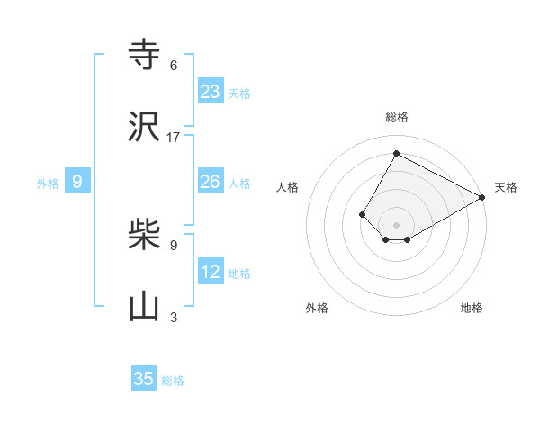寺沢 柴山さんの総格は35画の4点!