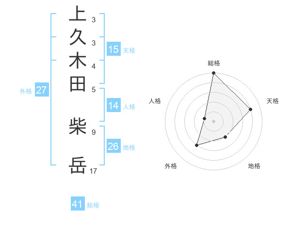 上久木田 柴岳さんの総格は41画の5点!