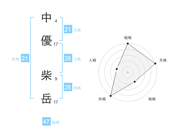 中優 柴岳さんを姓名の画数から五運を鑑定