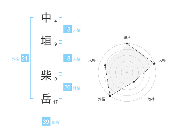 中垣 柴岳さんの総格は39画の5点!